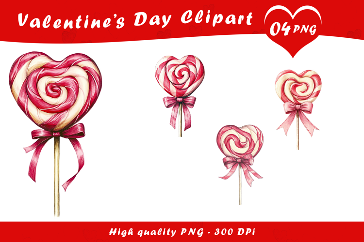 Valentine Day Heart Lollipop Clipart PNG example image 1