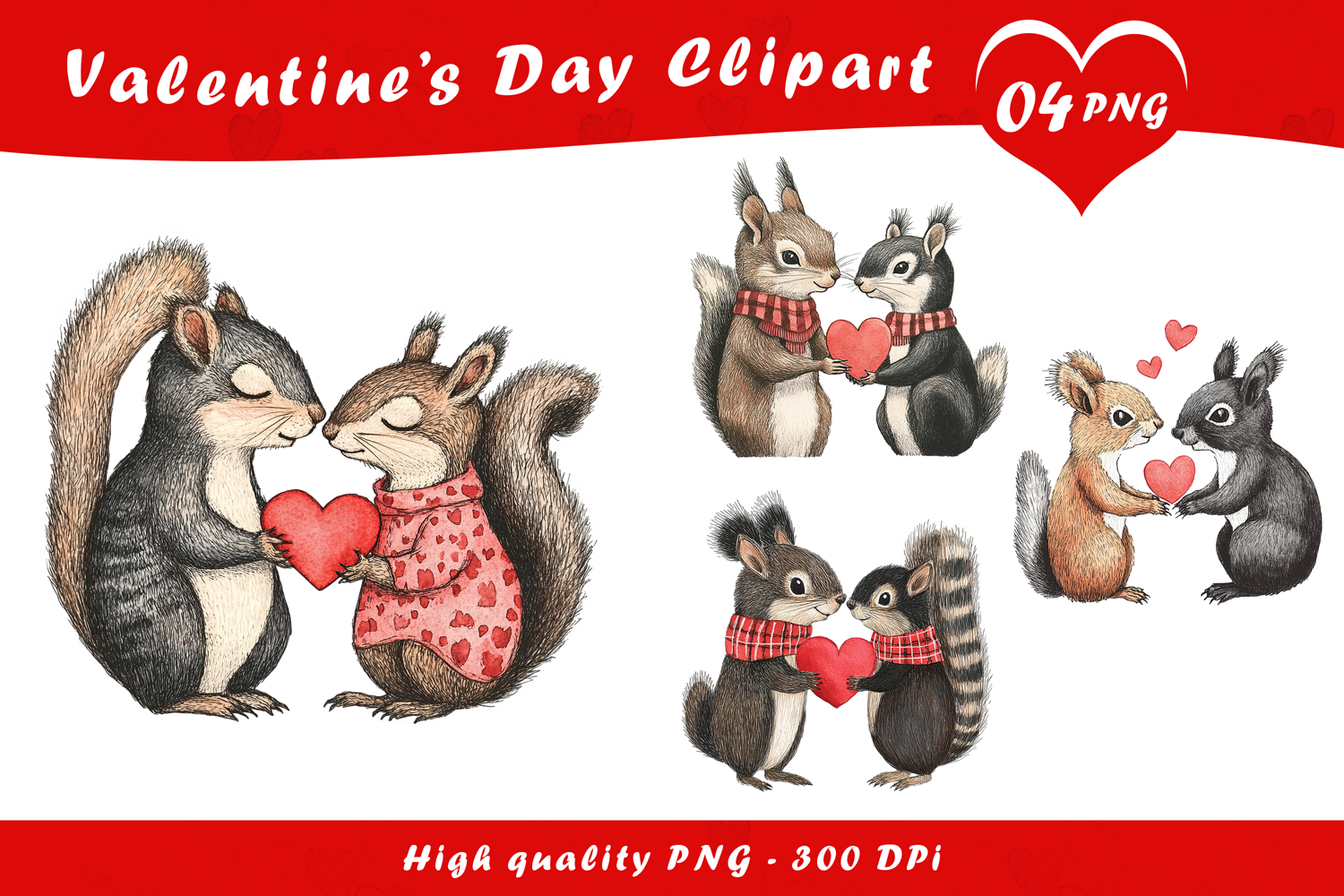 Valentine Day Cute Squirrel Clipart PNG example image 1