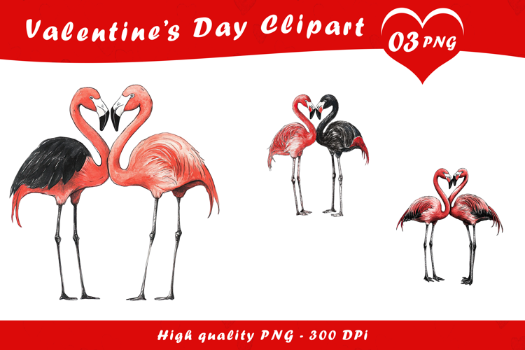 Valentine Day Flamingo Love Clipart PNG example image 1