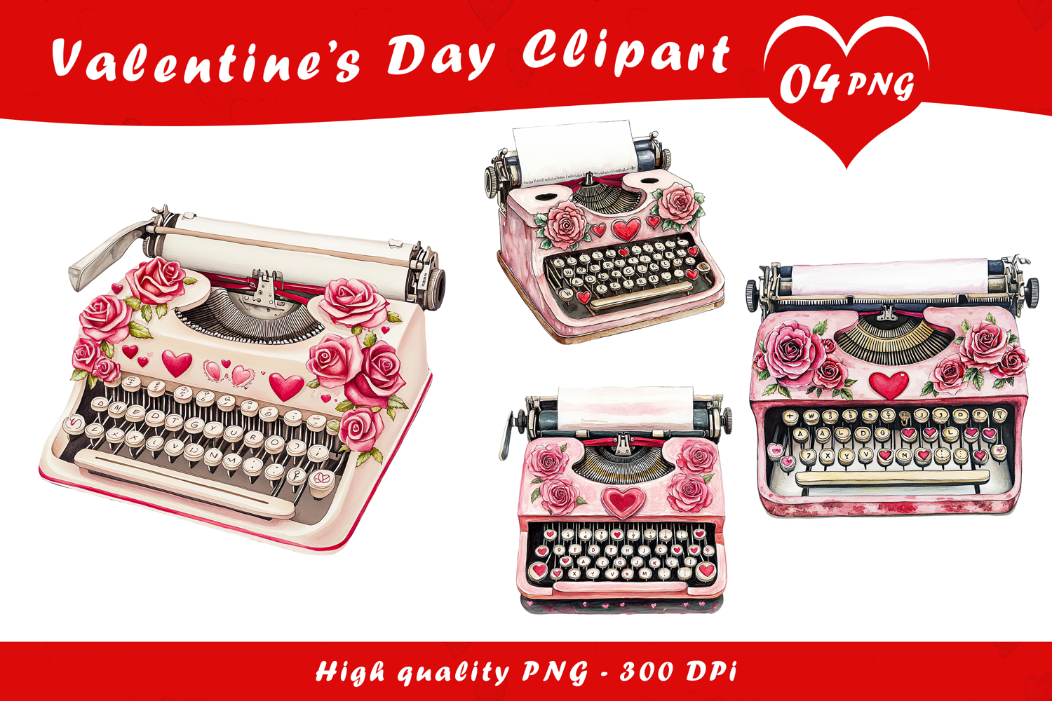 Valentine’s Day Vintage Typewriter Clipart PNG example image 1