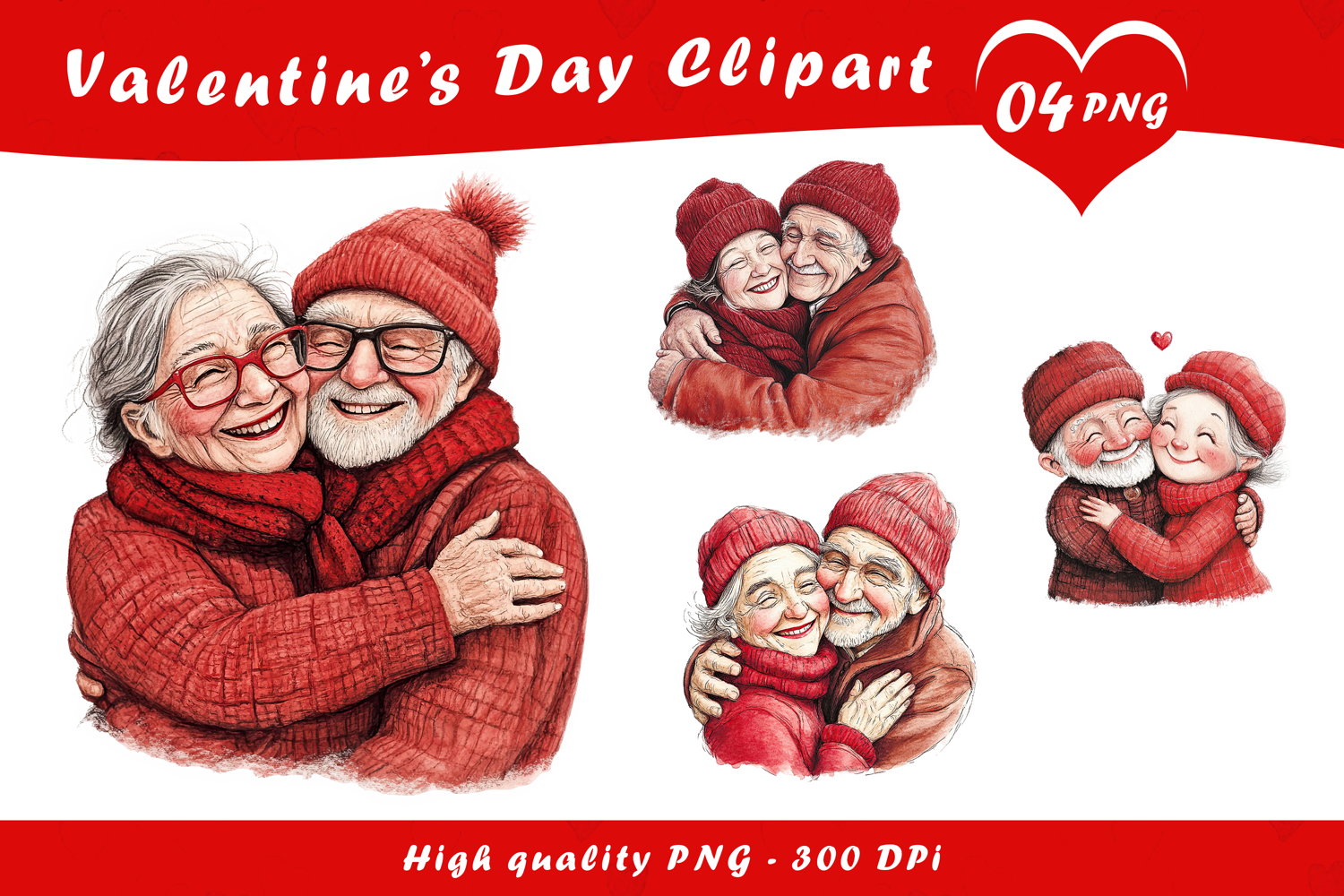 Similar Design Products to Valentine’s Day Elderly Couple Hug Clipart PNG