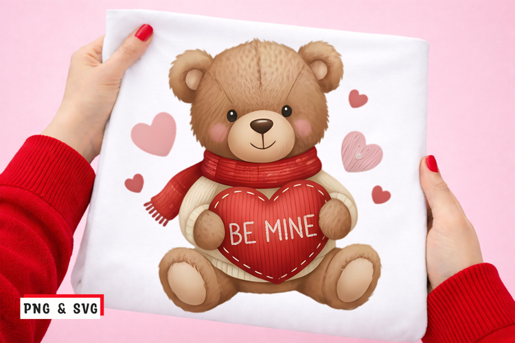 Cute Teddy Bear Valentine PNG SVG – Be Mine Heart Love Design