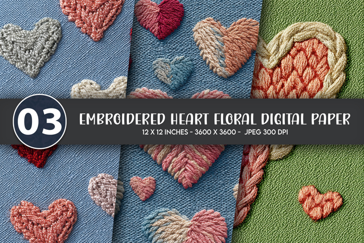 Similar Design Products to Embroidered Heart Floral Digital Paper