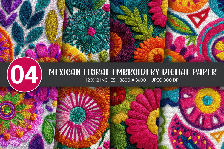 Mexican Floral Embroidery Digital Paper