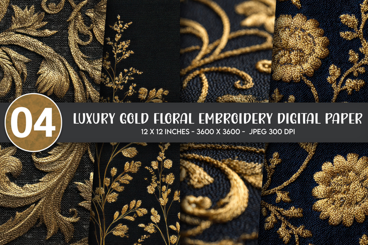 Similar Design Products to Luxury Gold Floral Embroidery Digital Paper