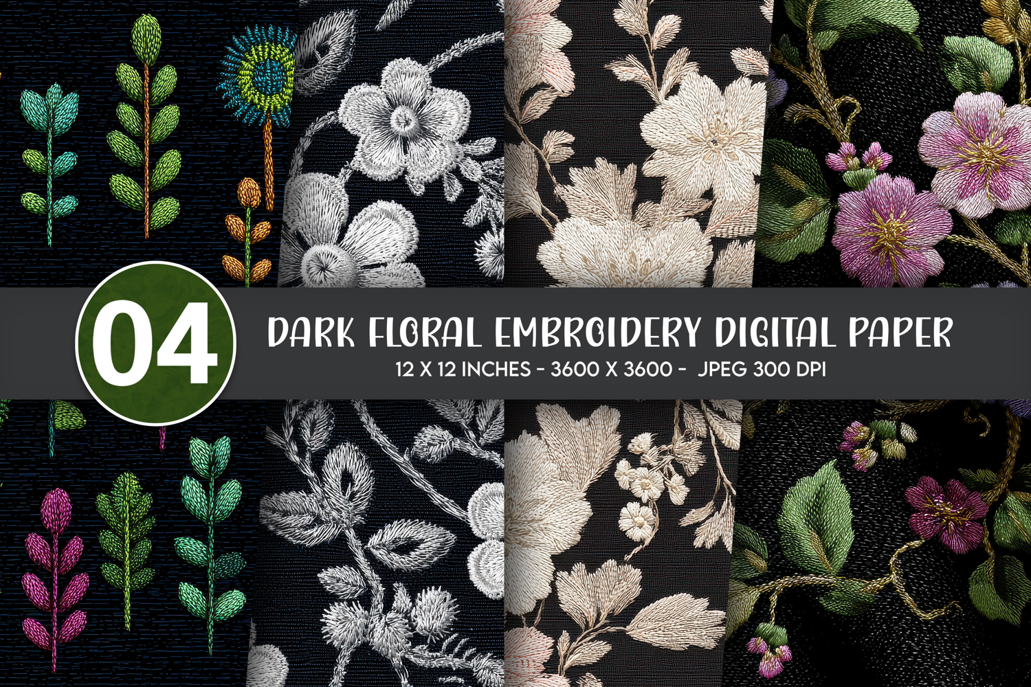 Dark Floral Embroidery Digital Paper