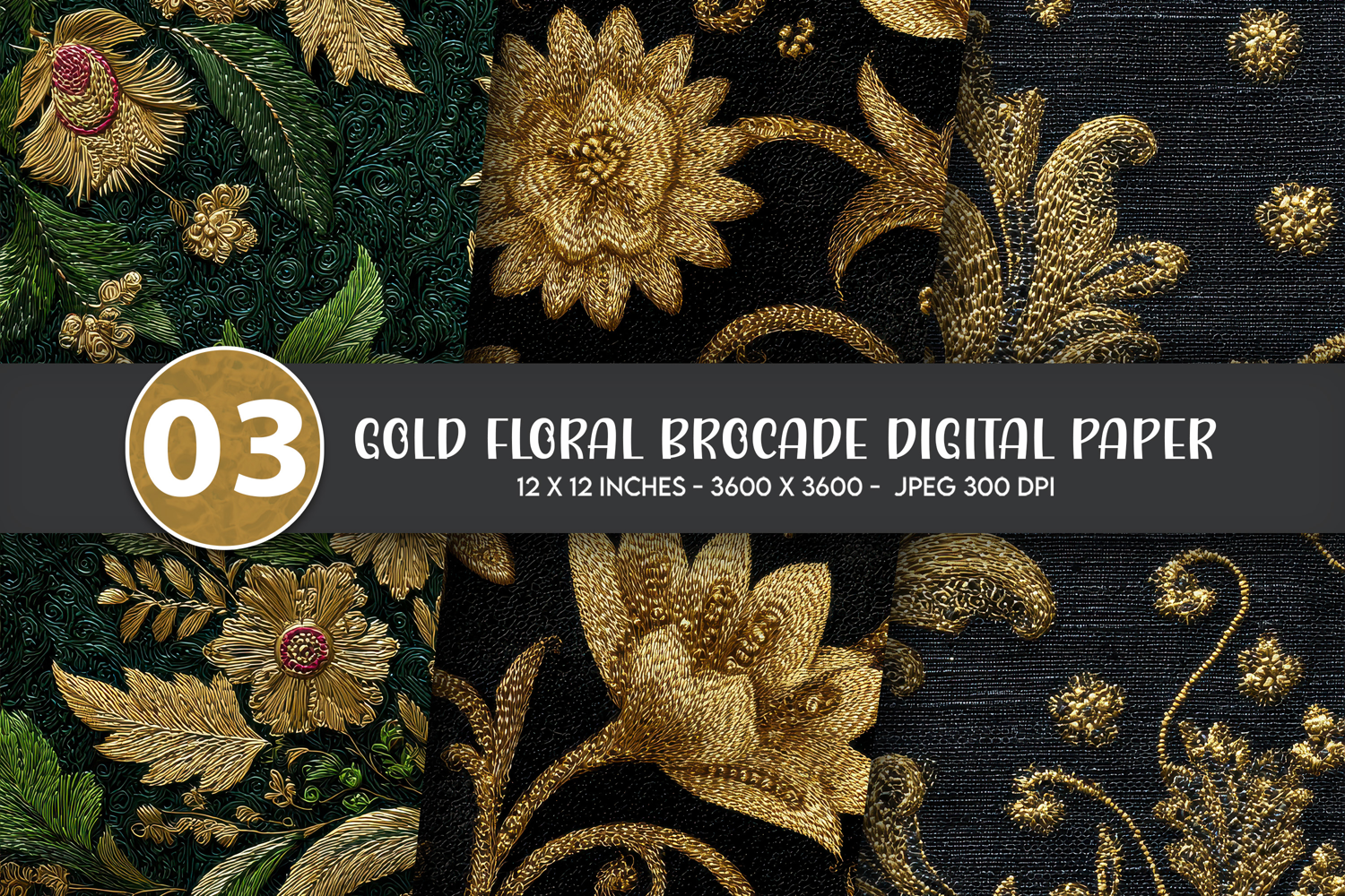 Damask Digital Paper Vintage Embroidery Antique Gold Texture Gold Floral Pattern Metallic Floral Elegant Botanical Dark Aesthetic Pattern Black Gold Background Royal Brocade Luxury Textile Design