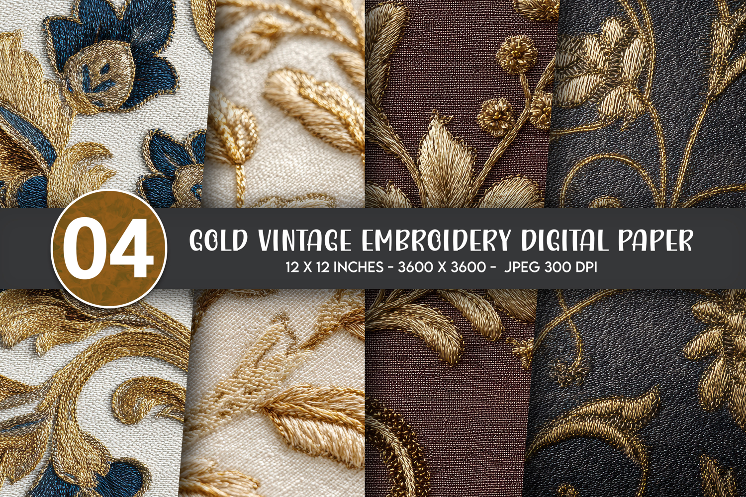 Similar Design Products to Gold Vintage Embroidery Digital Paper