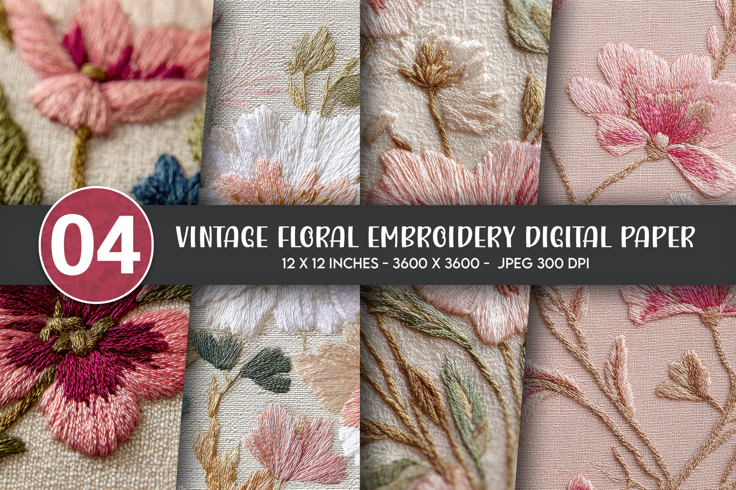 Vintage Floral Embroidery Digital Paper