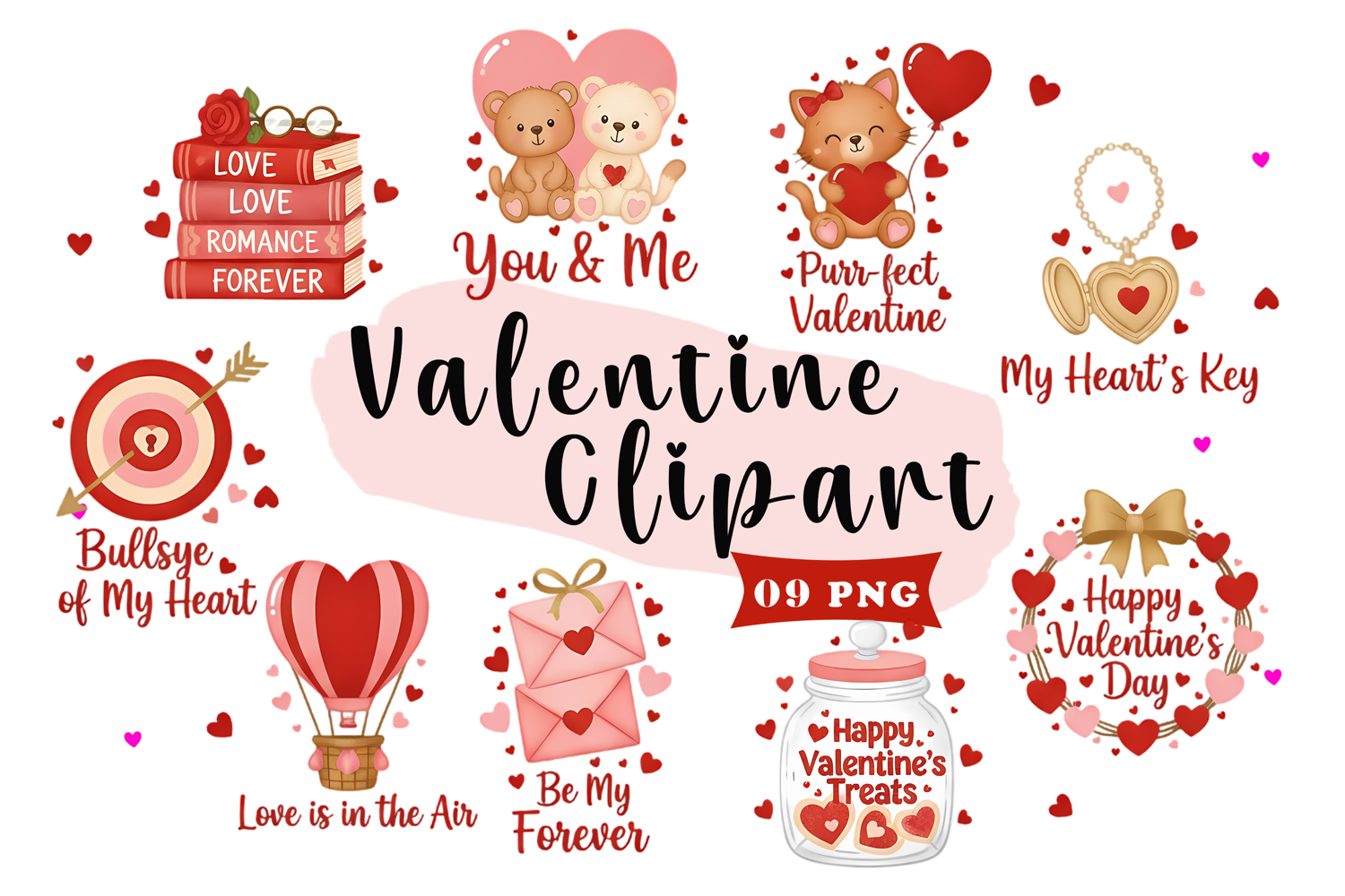 Romantic Valentine Clipart Love Quotes, Hearts & Gifts PNG example image 1