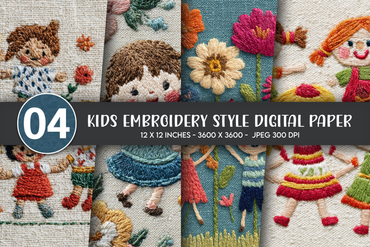 Similar Design Products to Kids Embroidery Style Digital Paper