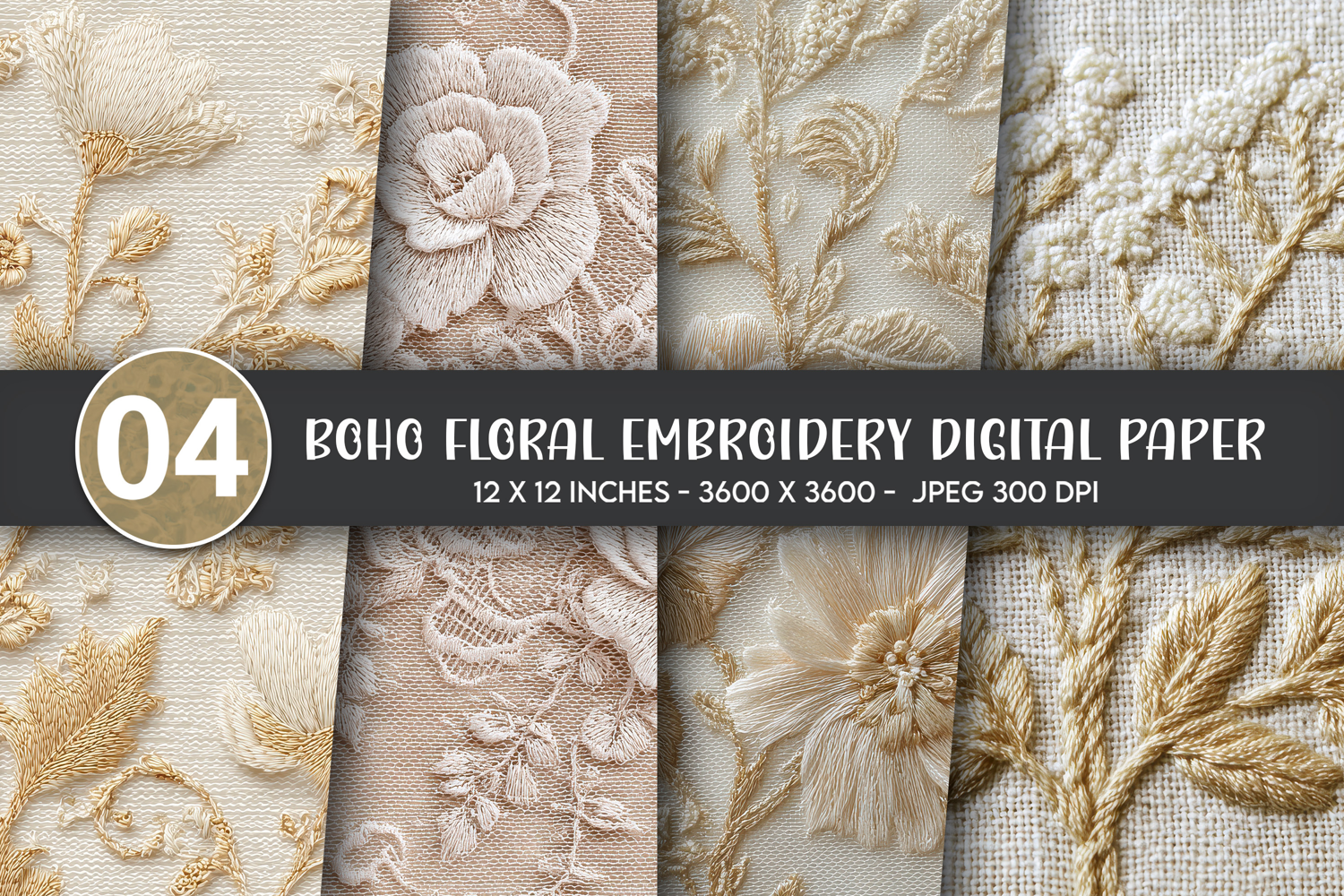 Embroidered Floral Scene Digital Paper