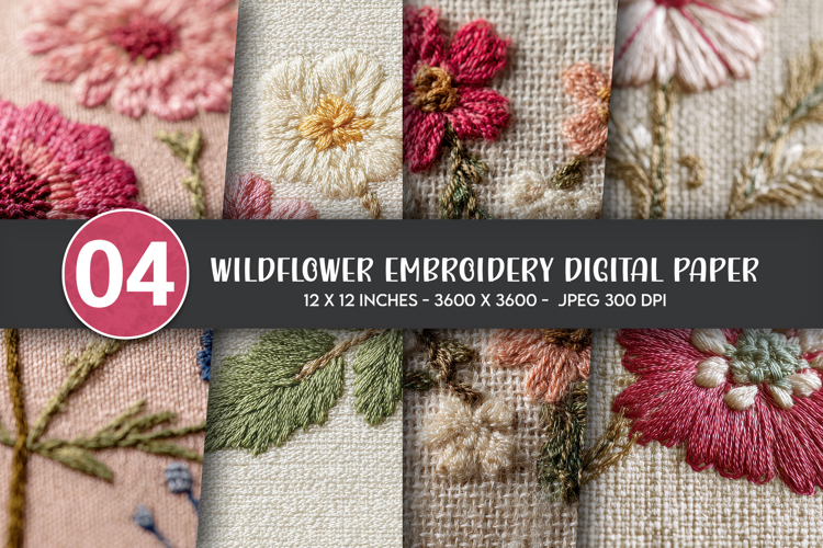 Wildflower Embroidery Digital Paper