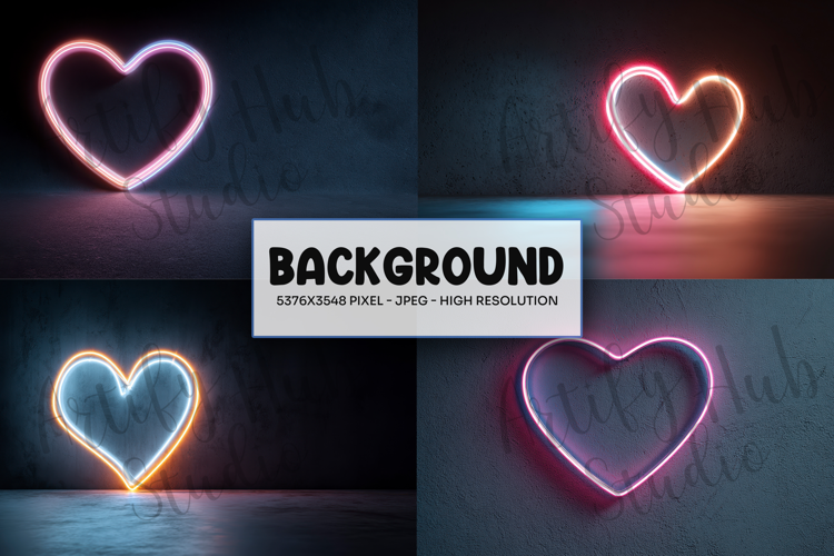 Neon Glowing Heart Light Background example image 1
