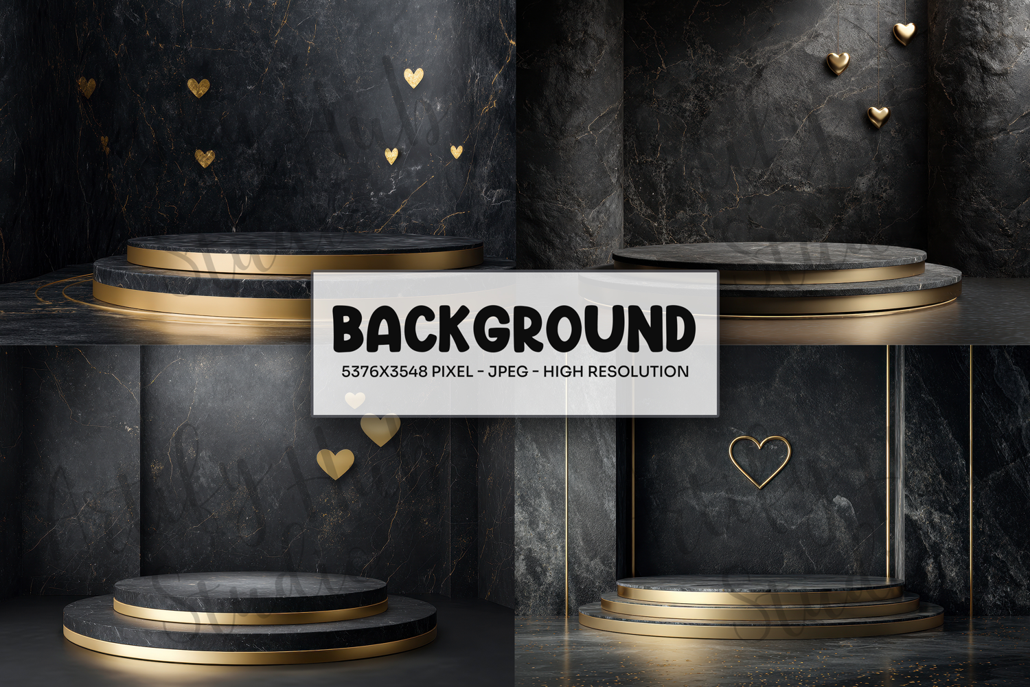 Black Marble Gold Heart Podium Background