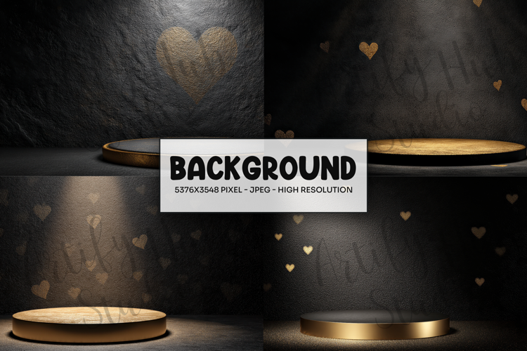 Black Gold Heart Podium Background