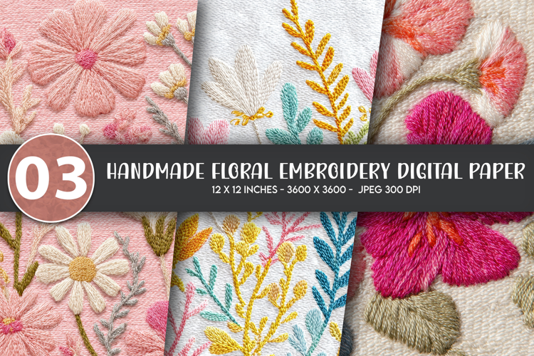 Handmade Floral Embroidery Digital Paper