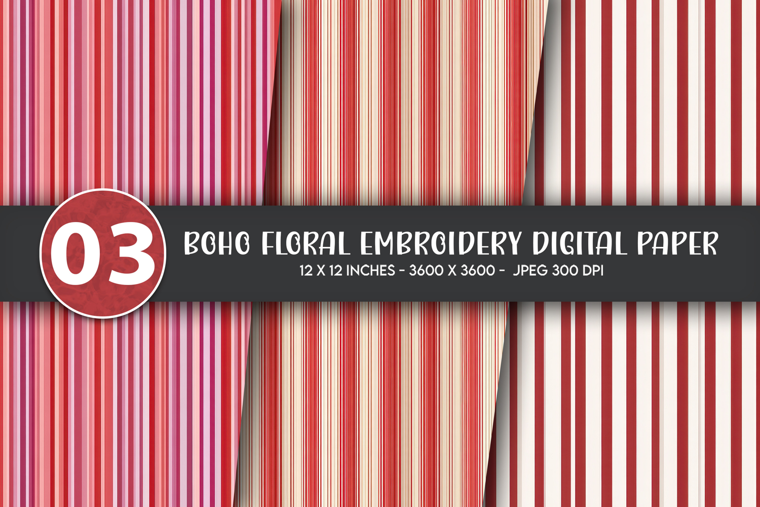 Boho Floral Embroidery Digital Paper