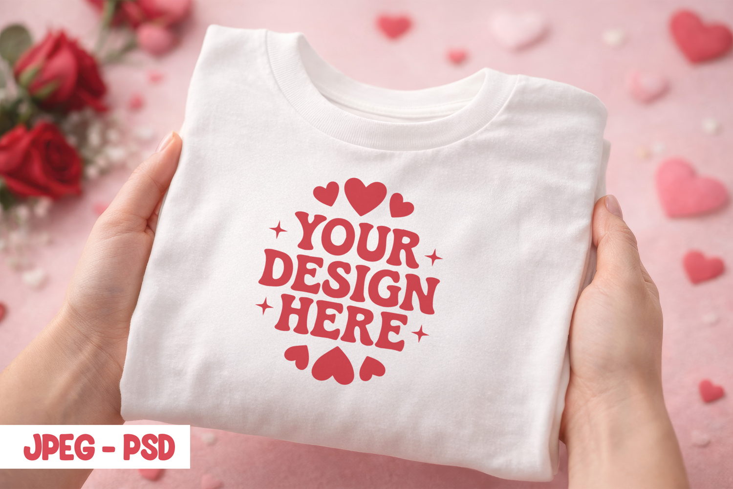 Valentine Hand Held T Shirt PSD JPEG Mockup