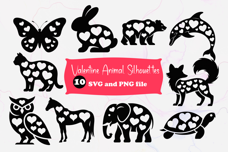 Similar Design Products to Valentine Animal Silhouettes Heart Pattern SVG PNG