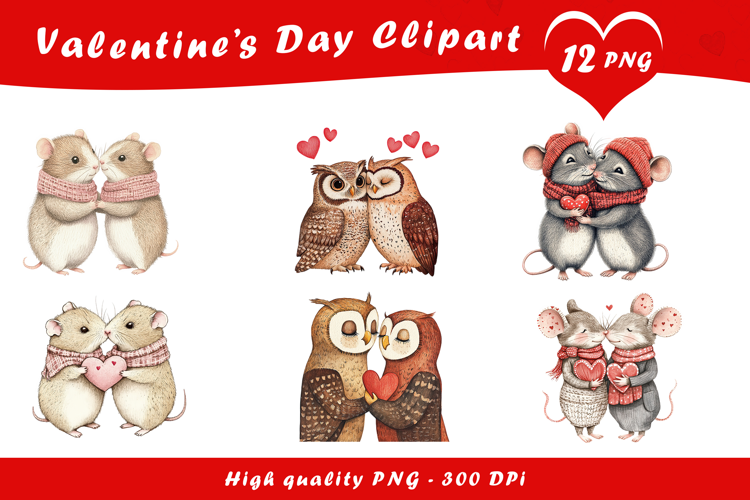 Valentine Cute Owls Clipart PNG example image 1