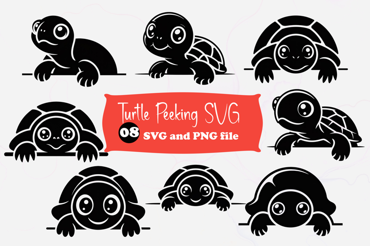 Similar Design Products to Turtle Peeking Over Edge SVG, Cute Sea Turtle Cut File PNG