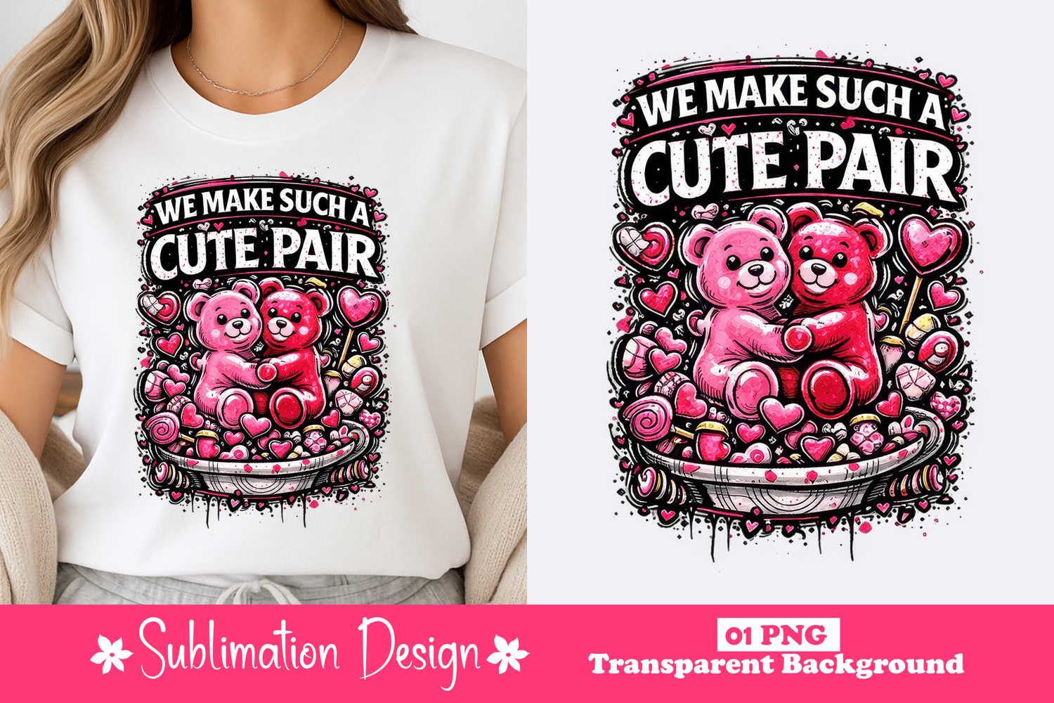 Romantic Illustration Kawaii Love Png Valentine Couple Png Valentine Character Art Sweet Couple Clipart Cute Pair Clipart Couple Sublimation Art Adorable Love Design Pink Heart Couple Playful Romance Design