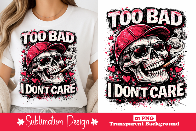 Too Bad I Don’t Care Skull Sarcastic Attitude Shirt Design