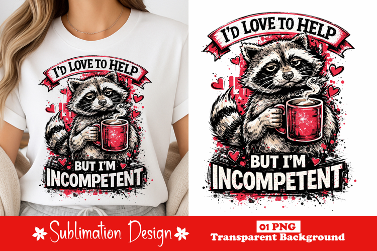 I’d Love to Help but I’m Incompetent Raccoon Coffee Sarcasm Shirt Design