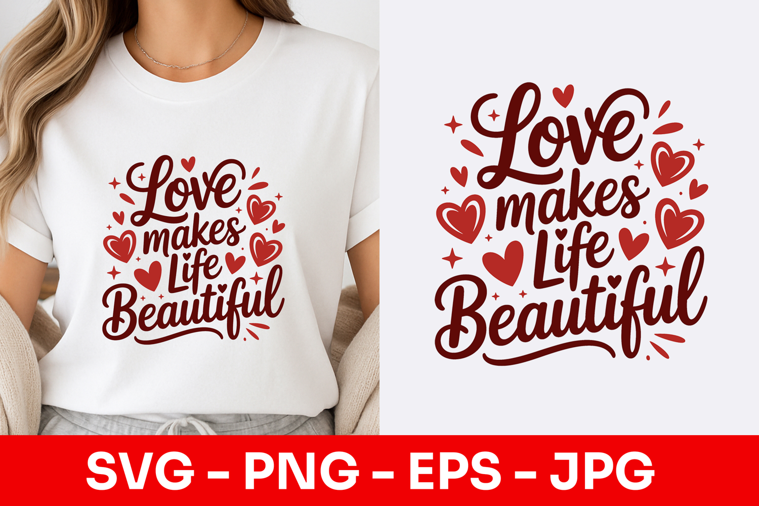 Love Makes Life Beautiful Heart Style SVG PNG example image 1