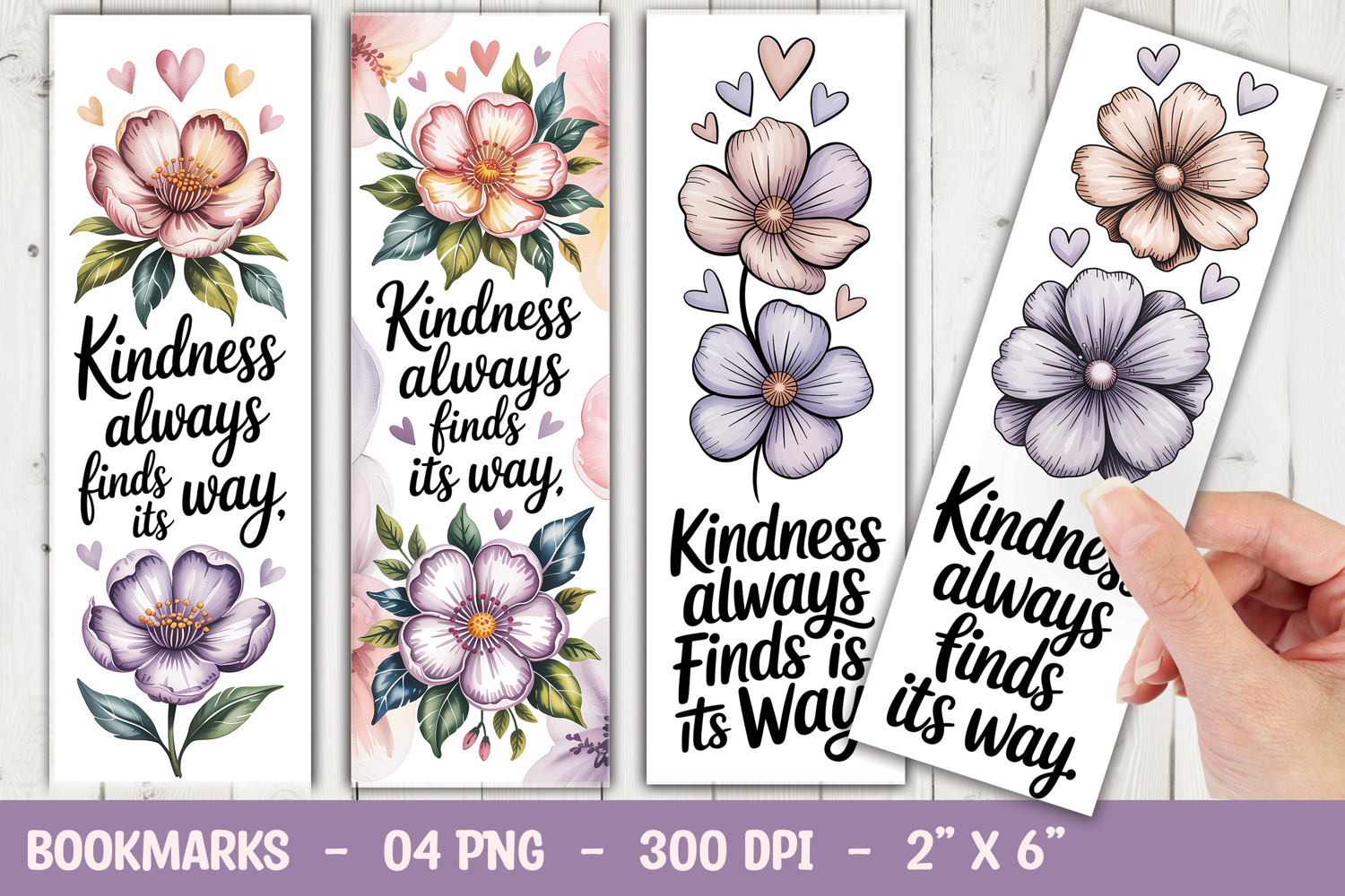 Printable Bookmark Floral Bookmark Watercolor Bookmark Flower Bookmark Sublimation Bookmark Design Bookmark Sublimation Positive Message Art Inspirational Bookmark Kindness Quote Bookmark Kindness Art Bookmark