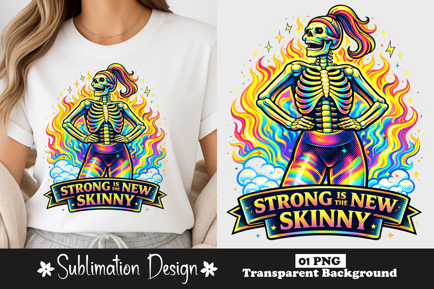 Sublimation Png Design Strong Is The New Skinny Gym Motivation Quote Skeleton Gym Girl Fitness Skeleton Design Halloween Workout Shirt Colorful Skeleton Art Women Fitness Graphic Spooky Gym Aesthetic Weightlifting Skeleton