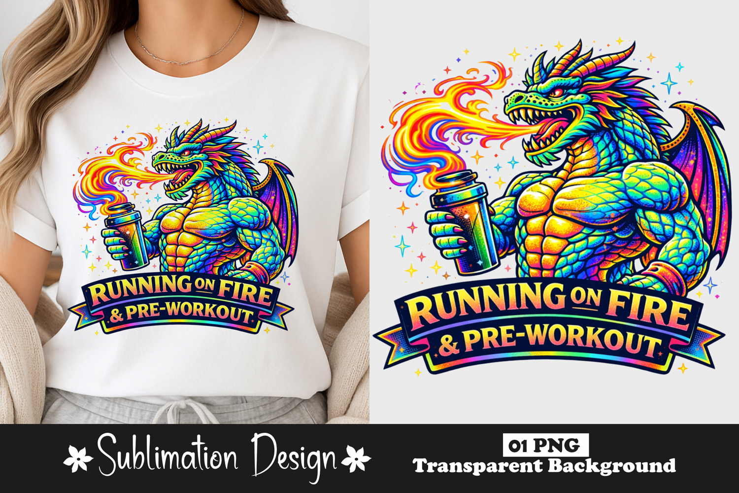 Running On Fire And Pre Workout Dragon Gym Sublimation PNG example image 1