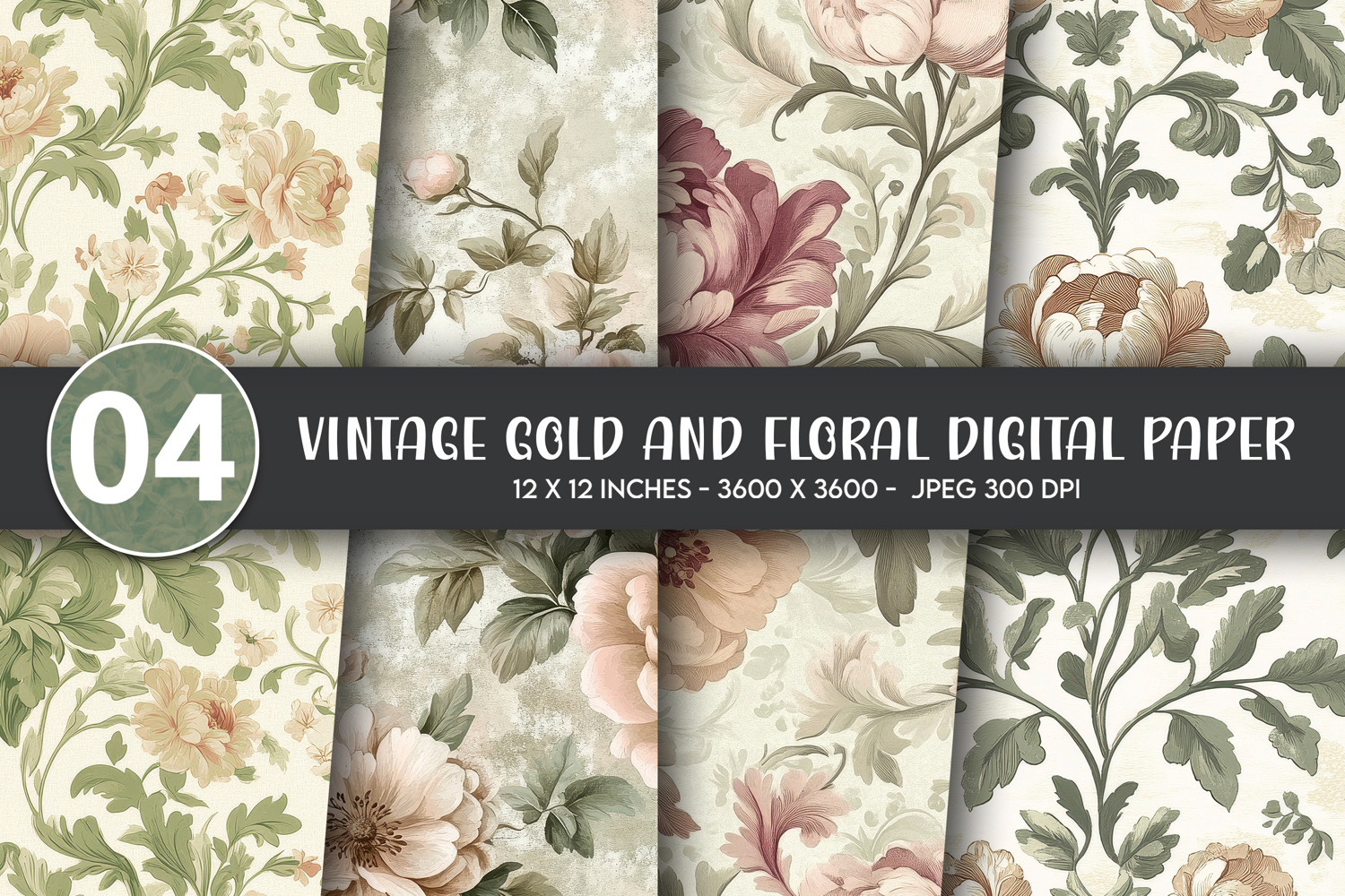 Vintage Gold and Floral Digital Paper