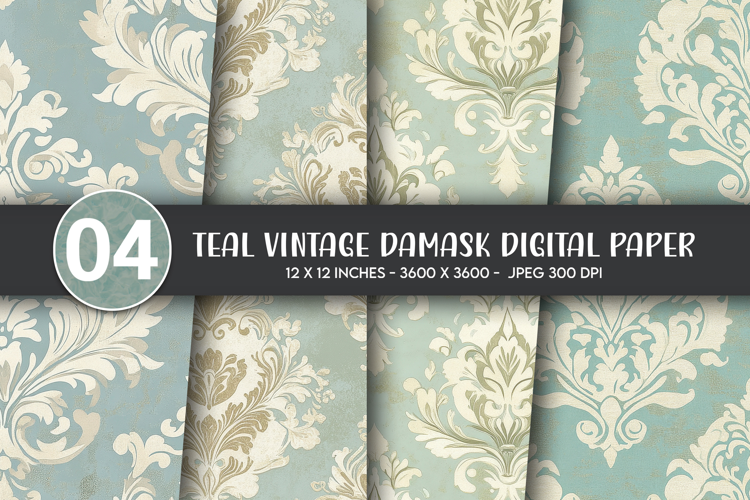 Teal Vintage Damask Digital Paper