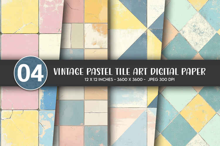 Vintage Pastel Tile Art Digital Paper