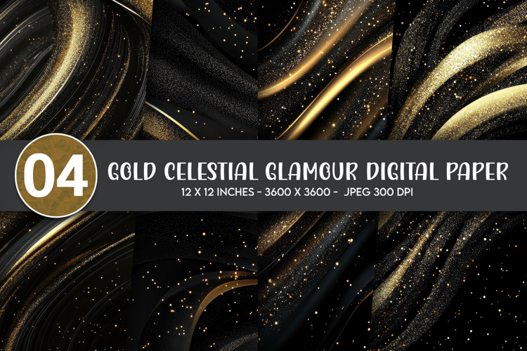 Gold Celestial Glamour Digital Paper