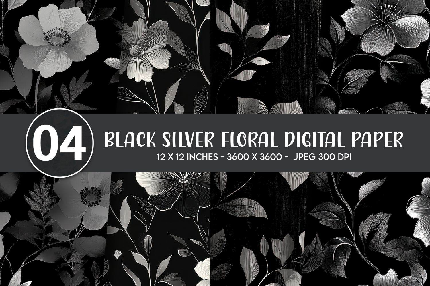 Similar Design Products to Black Silver Floral Digital Paper