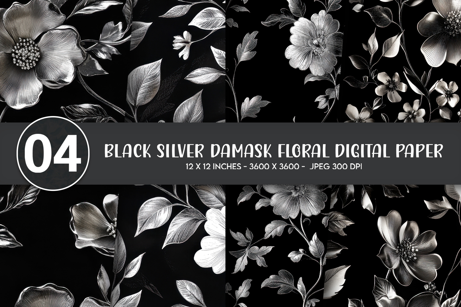 Similar Design Products to Black Silver Damask Floral Digital Paper