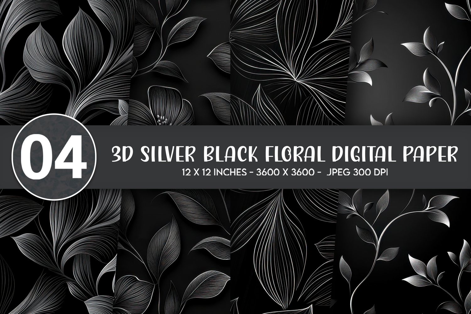 Similar Design Products to 3D Silver Black Floral Digital Paper