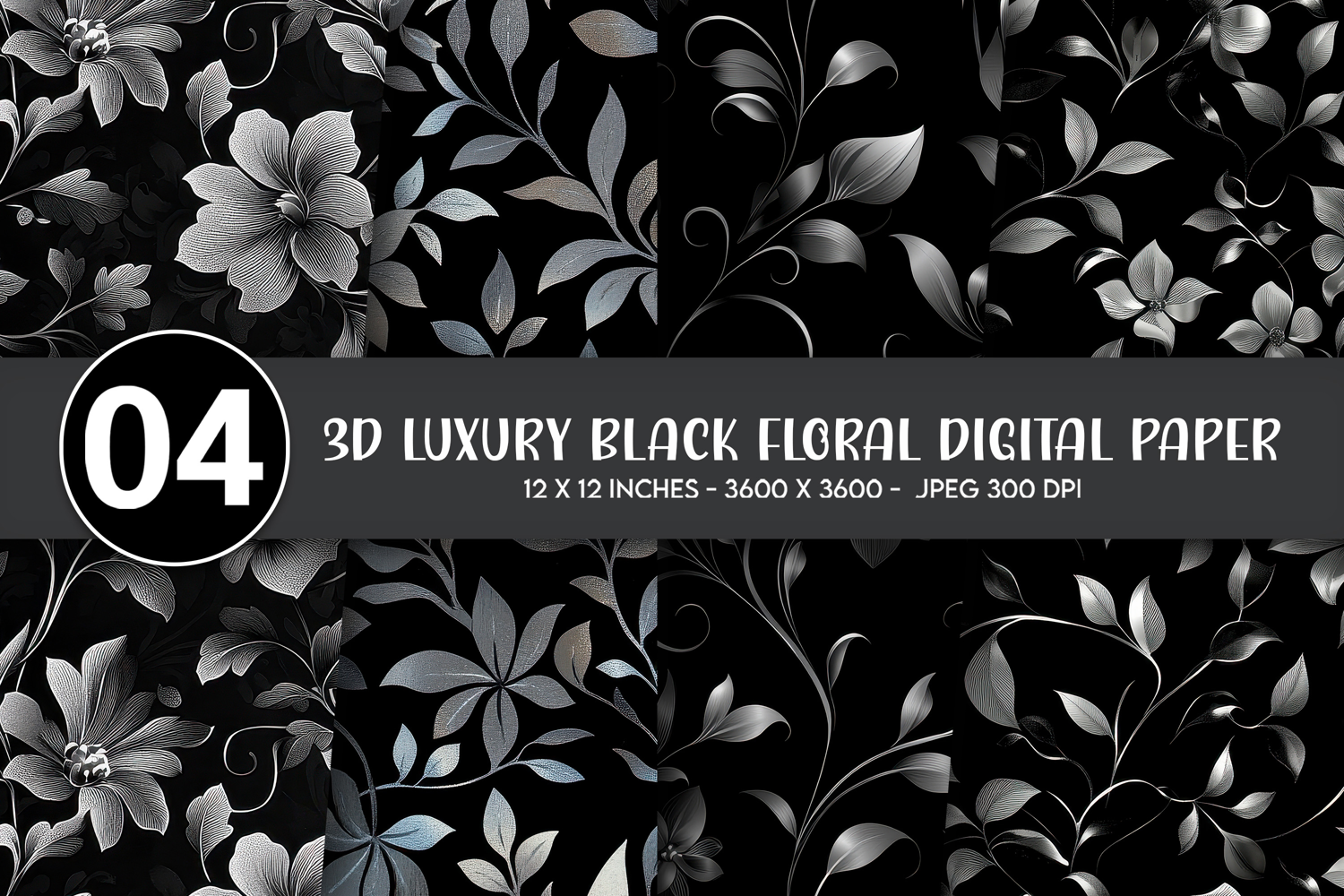 Similar Design Products to 3D Luxury Black Floral Digital Paper