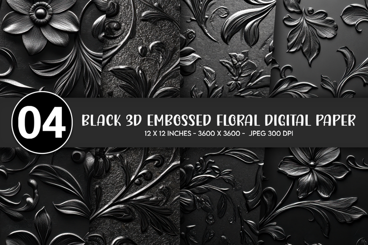 Similar Design Products to Black 3D Embossed Floral Digital Paper