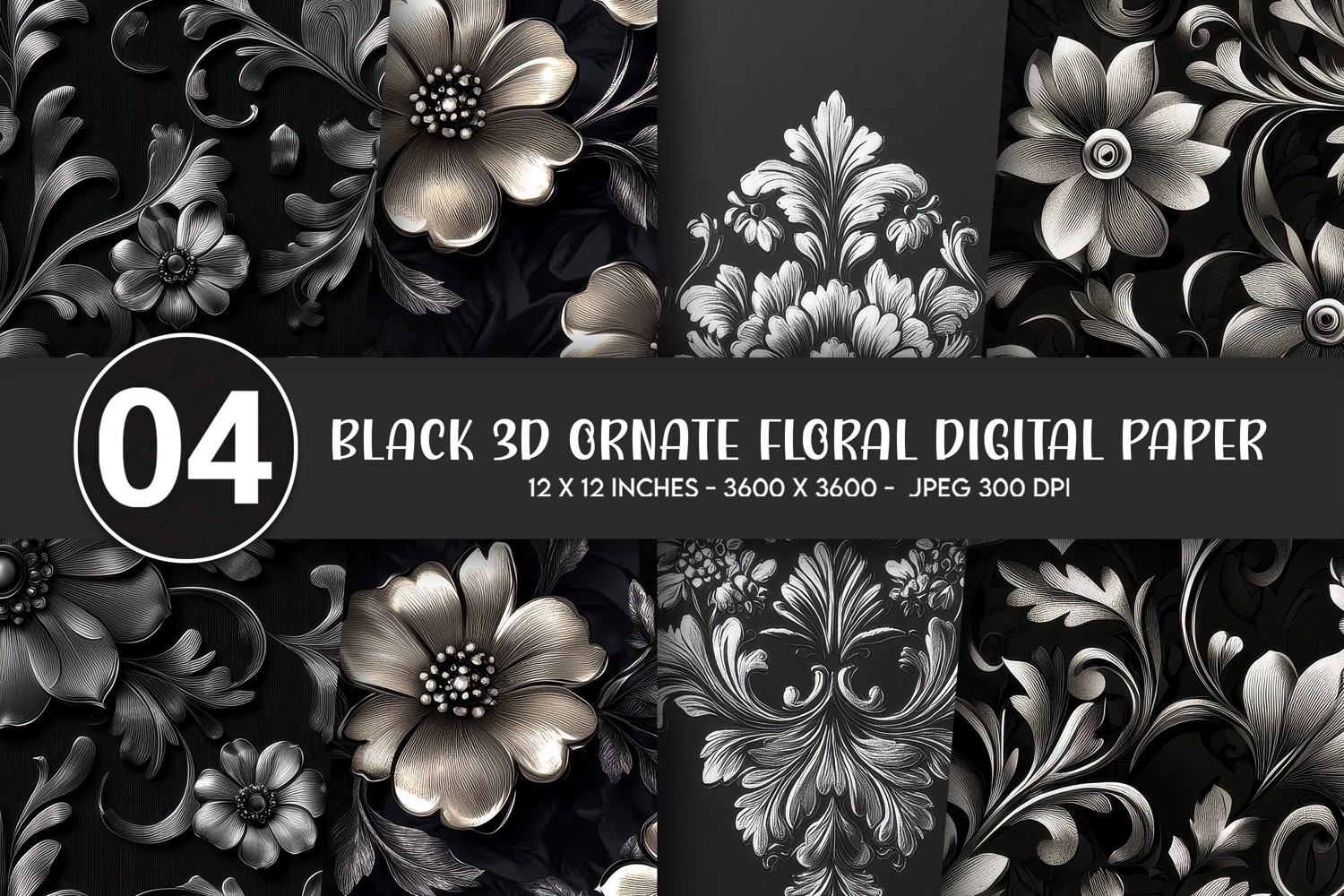Similar Design Products to Black 3D Ornate Floral Digital Paper