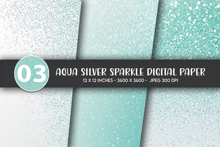 Aqua Silver Sparkle Digital Paper