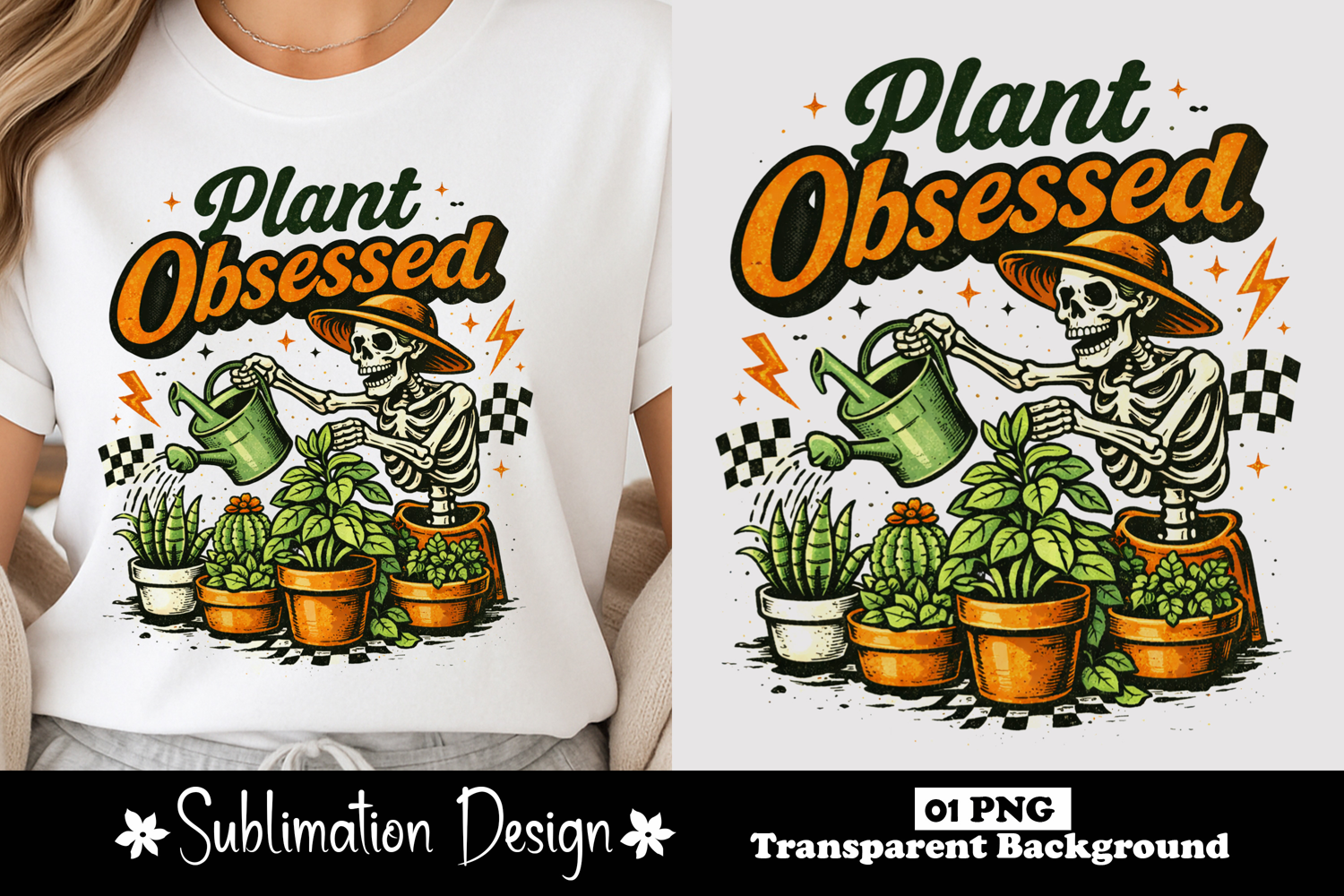 Plant Obsessed Skeleton Watering Plants Sublimation Design
