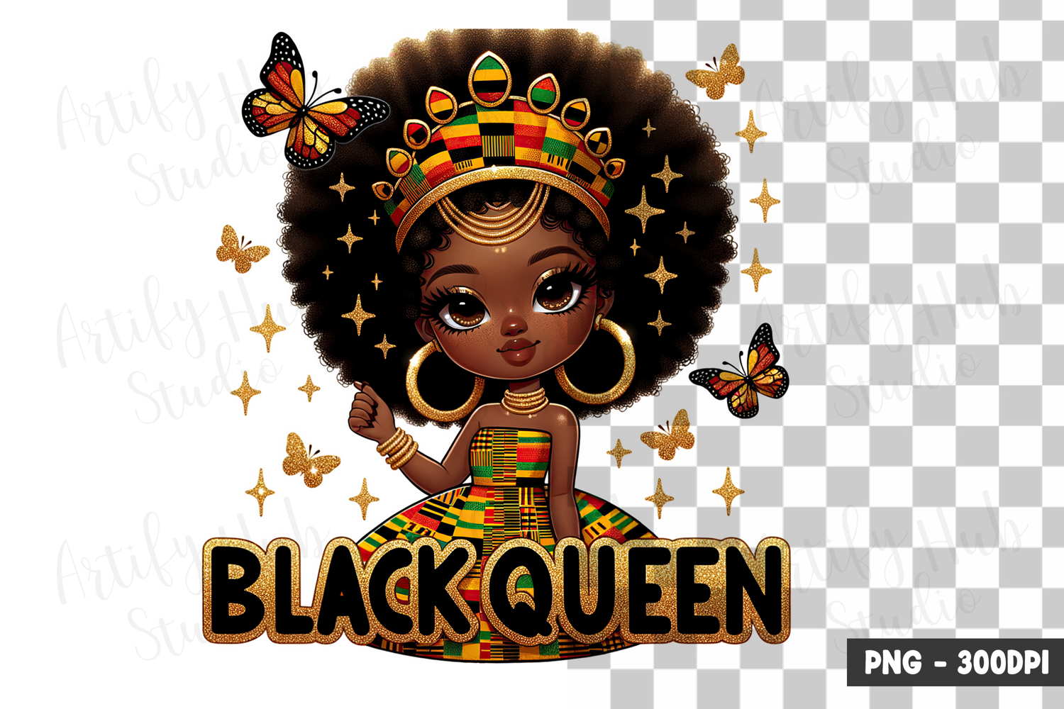 Black Queen Afro Girl Clipart PNG