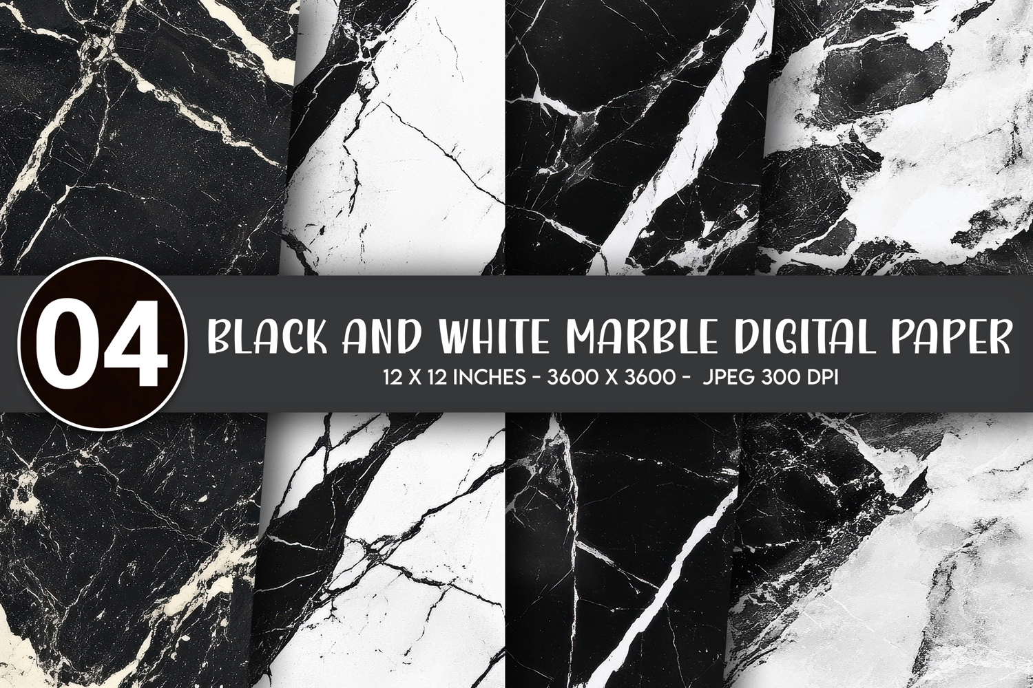 Black and White Marble Digital Paper