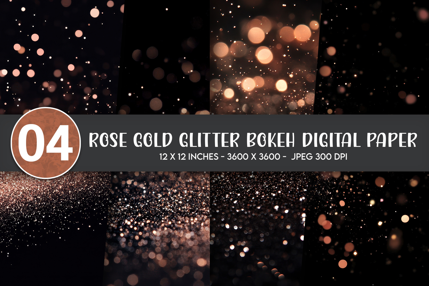 Rose Gold Glitter Bokeh Digital Paper