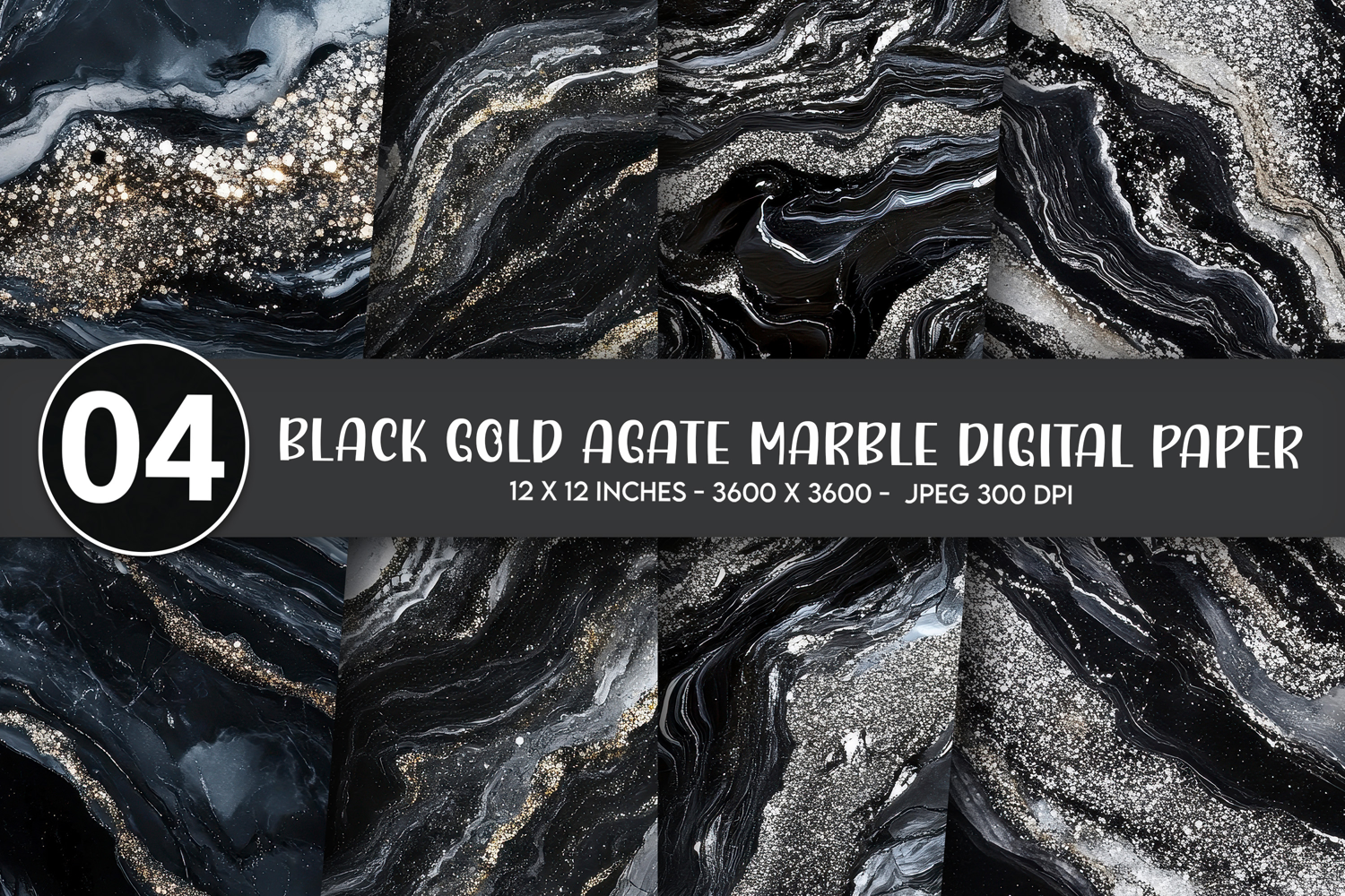 Similar Design Products to Black Gold Agate Marble Digital Paper