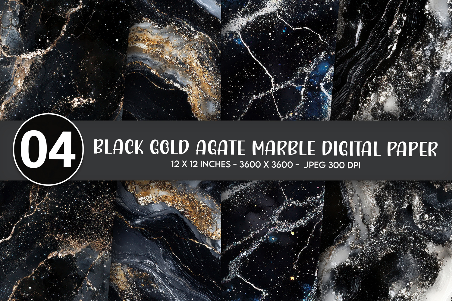Black Gold Agate Marble Digital Paper